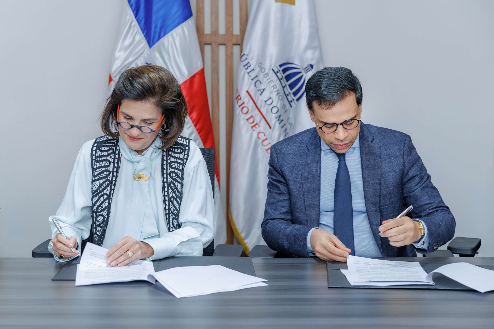 El acuerdo fue suscrito por el ministro de Cultura, Roberto Ángel Salcedo Sanz, y la presidenta de la Fundación Eduardo León Jimenes, María Amalia León, durante un acto que se llevó a cabo en el Salón Ministerial del MINC.