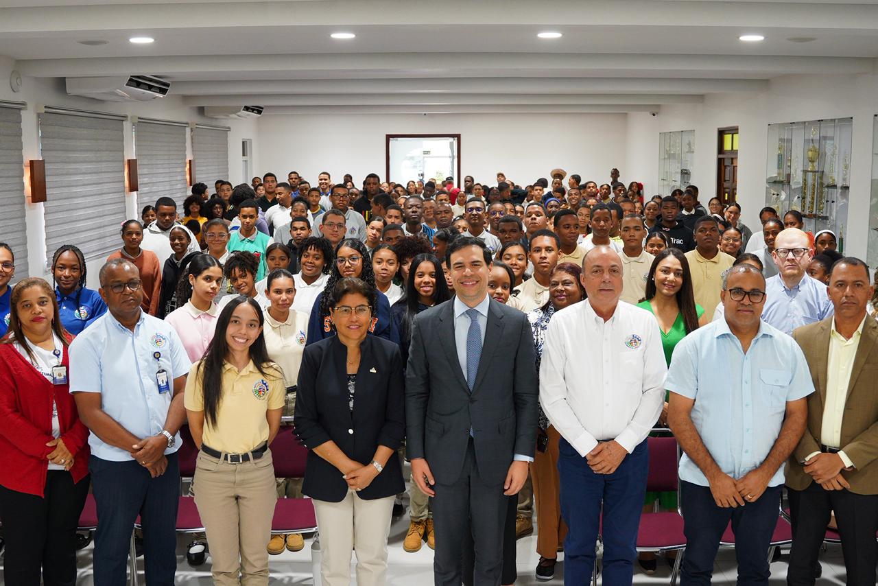 El conversatorio tuvo lugar en el Instituto Tecnológico San Ignacio de Loyola (ITESIL), con la participación de aproximadamente 170 estudiantes de quinto grado de secundaria, en el cual la estudiante Thalianny Brito fungió como moderadora en el diálogo con el ministro.