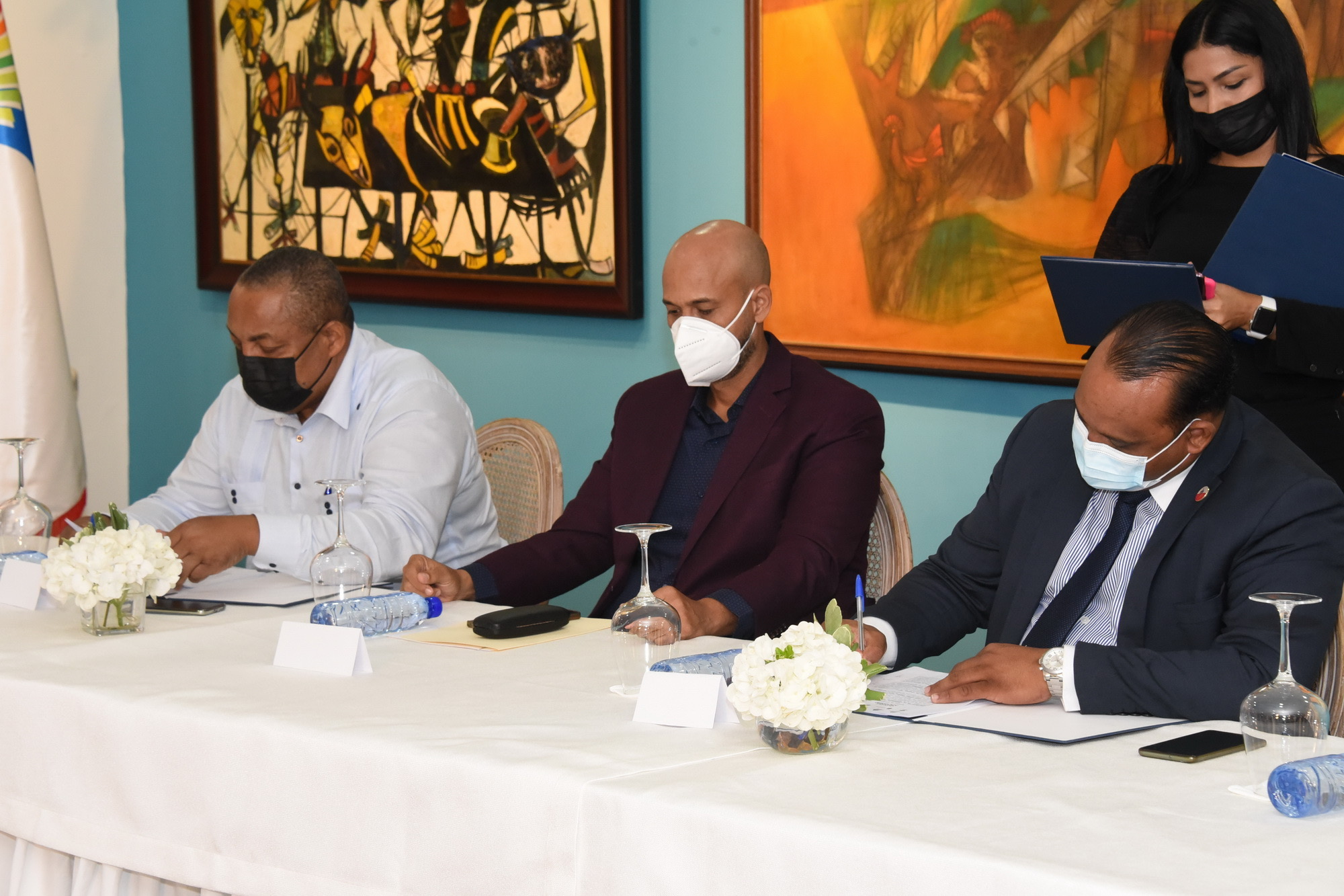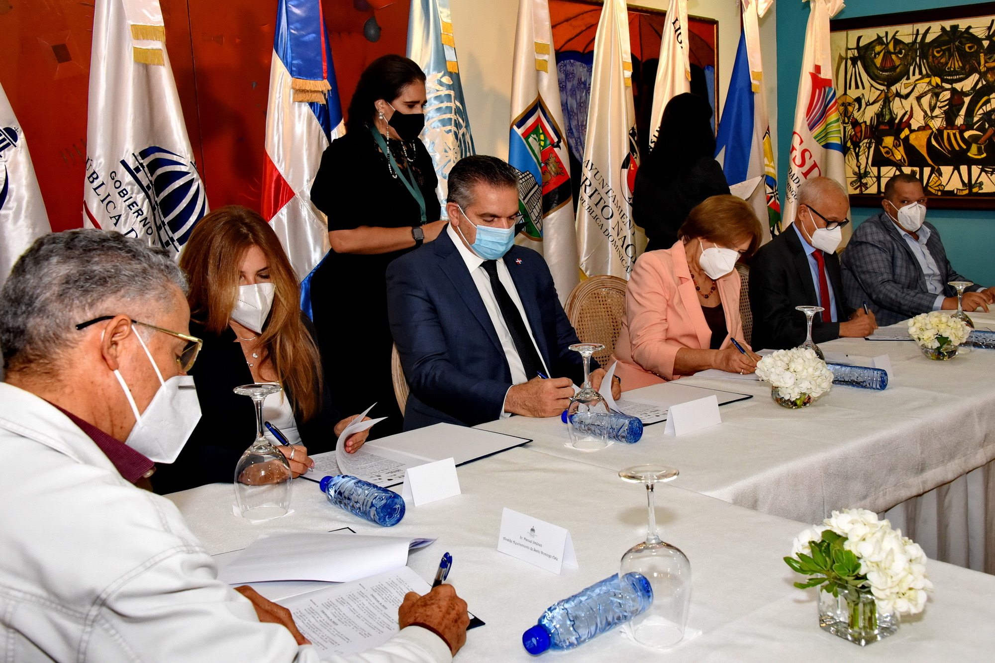 Junto a la ministra Carmen Heredia, firmaron el convenio Andrés L. Mateo, embajador de la República Dominicana ante la Unesco; José Leonel (Neney) Cabrera, ministro encargado de Propeep; Víctor D’Aza, secretario general de la LMD; Carolina Mejía, alcaldesa de Santo Domingo; Manuel Jiménez, alcalde de Santo Domingo Este; Carlos Guzmán, alcalde de Santo Domingo Norte y presidente de la MGSD; José Andújar, alcalde de Santo Domingo Oeste; Kelvin Cruz, presidente de Fedomu, y Ramón Santos, presidente de Fedodim.