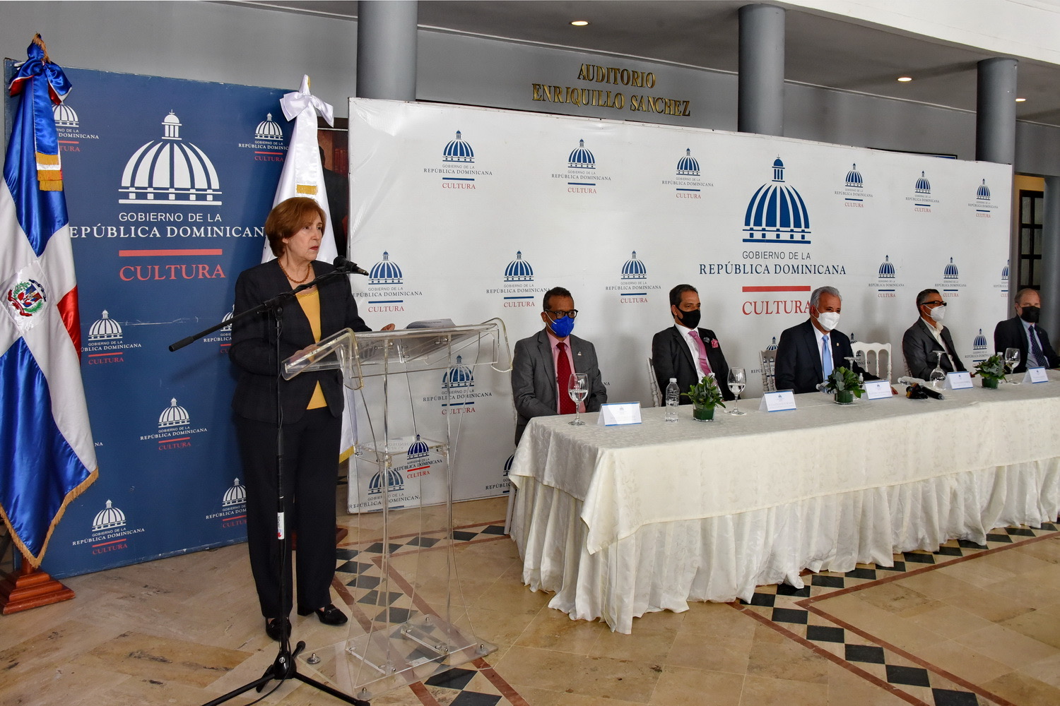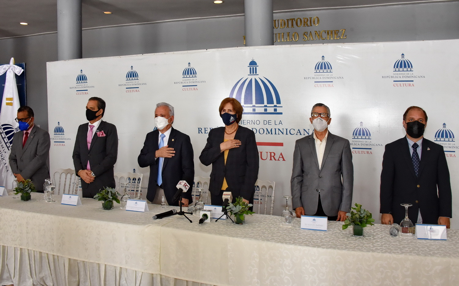 El encuentro con los medios de comunicación estuvo encabezado por la ministra de Cultura, Carmen Heredia de Guerrero, acompañada por el director general de la Feria del Libro, Joan Ferrer; el viceministro de Identidad Cultural y Ciudadanía, Pastor de Moya; el senador por la provincia de Santo Domingo, Antonio Taveras Guzmán; el alcalde de Santo Domingo Este, Manuel Jiménez, y el director del Libro y la Lectura, Basilio Belliard.