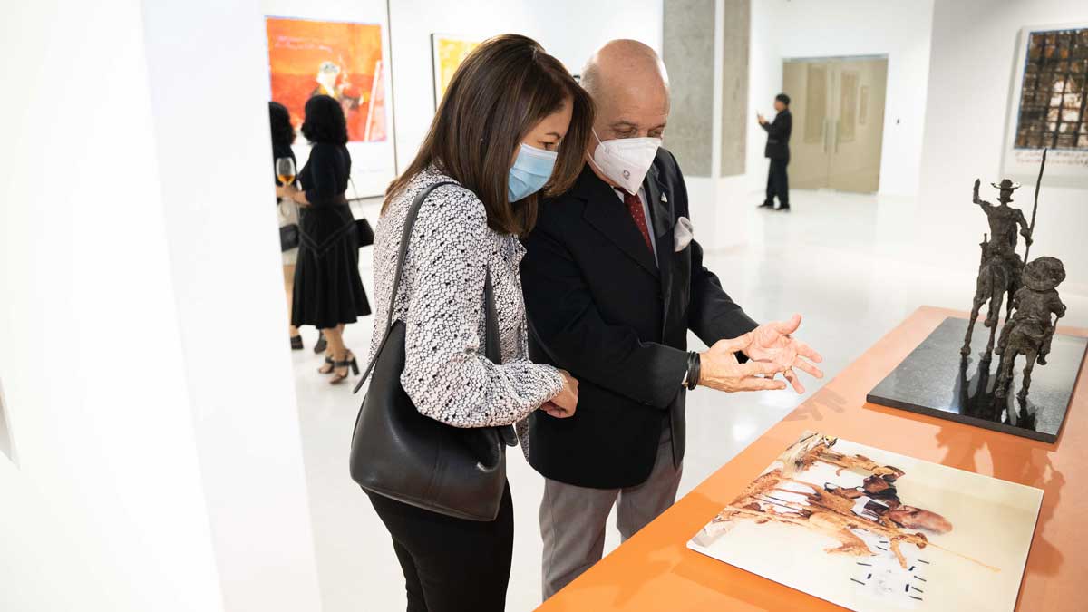 La muestra, que incluye pinturas, dibujos y esculturas, está compuesta por más de 120 obras realizadas por el artista en el transcurso de las últimas seis décadas.