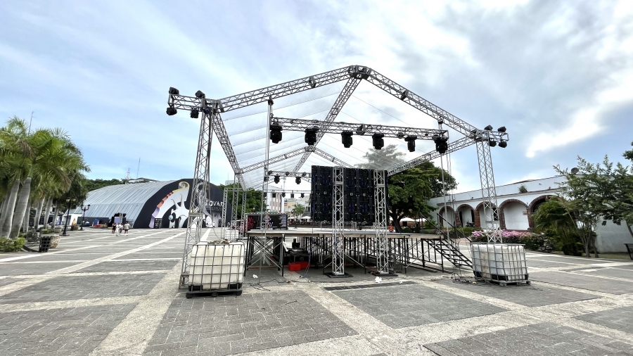 En la Fortaleza de Santo Domingo se agiliza el montaje de la tarima y equipos de sonido para la celebración del “Festival de la Música”, evento organizado por la Alianza Francesa y la Embajada de Francia que ofrecerá presentaciones artísticas a cargo de agrupaciones locales.
