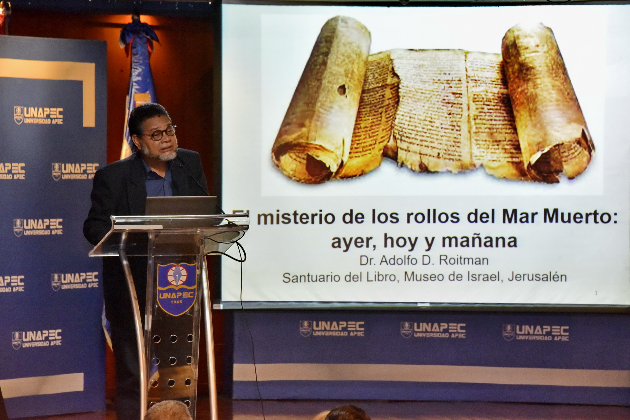 Santo Domingo-. El Ministerio de Cultura, en coordinación con la Embajada de Israel en la República Dominicana y la Universidad APEC, ofrecieron la conferencia “Los Rollos del mar Muerto: ayer, hoy y mañana”, acerca del conocido manuscrito bíblico encontrado en las cuevas situadas en Qumrán, Israel.