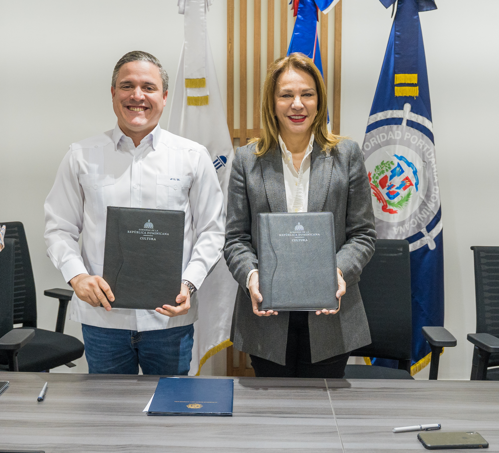 Santo Domingo-. El Ministerio de Cultura (MINC) y La Autoridad Portuaria Dominicana (APORDOM) firmaron este miércoles dos convenios de colaboración interinstitucional con la finalidad de integrar iniciativas culturales, de expresión artística y de promoción de valores vinculados al arte en los puertos marítimos con acceso a la recepción de cruceristas.