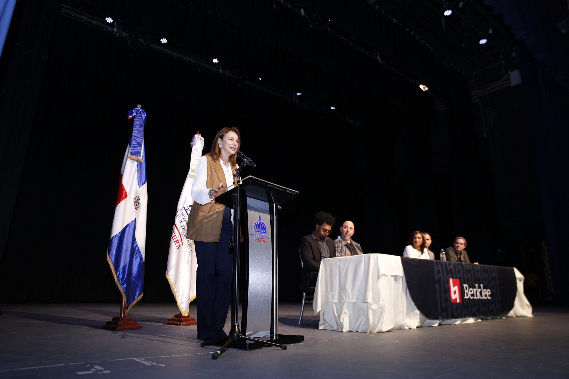 Santo Domingo.- En un acto celebrado en el Conservario Nacional de Música y encabezado por la Ministra de Cultura, Milagros Germán, quien estuvo acompañada de Jason Camelio, director de Iniciativas Globales de Berklee College of Music, y Bredyg Disla, vicepresidente de la Fundación AES Dominicana, se dio apertura la mañana de este lunes al programa de capacitación musical “Berklee en Santo Domingo 2023”.