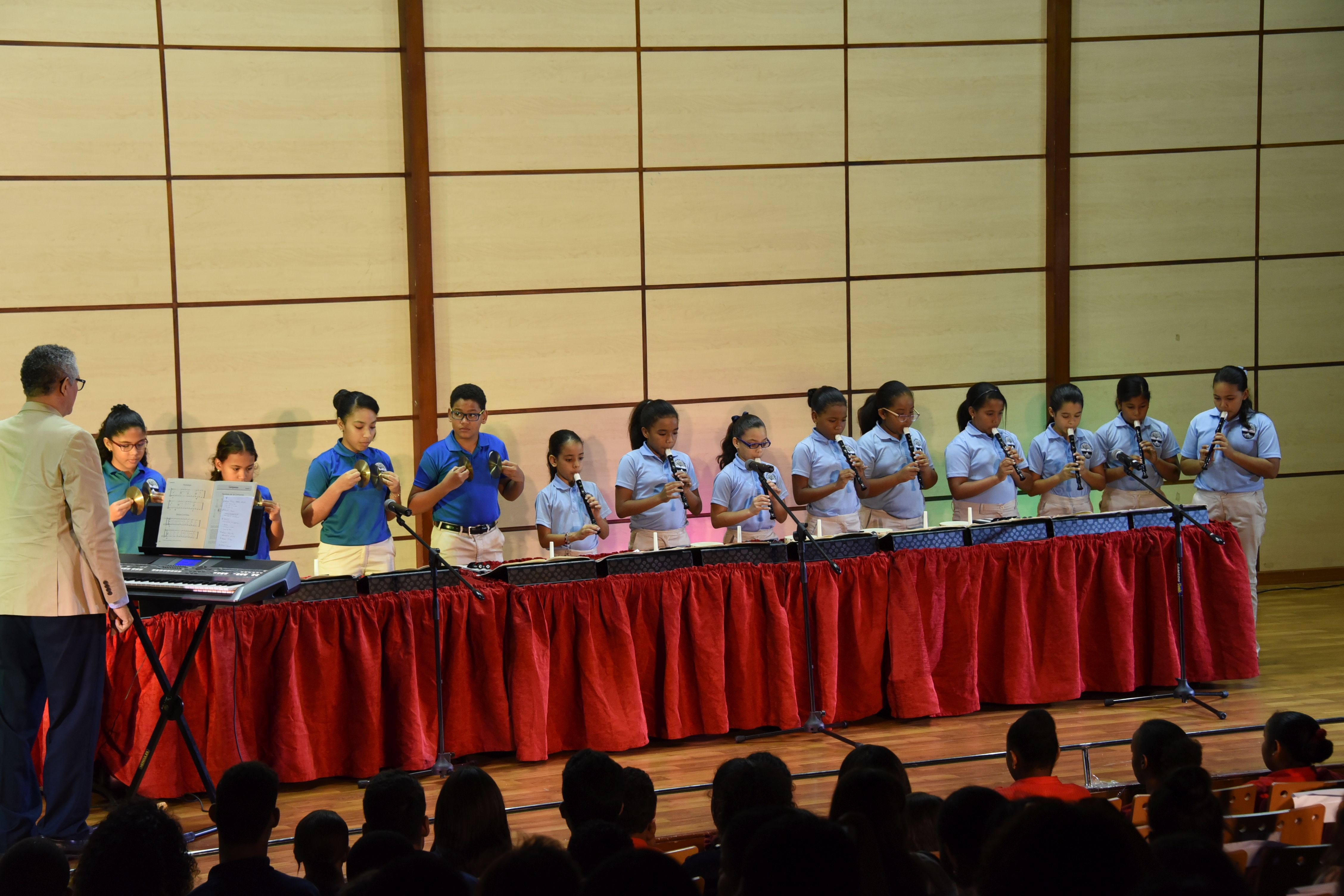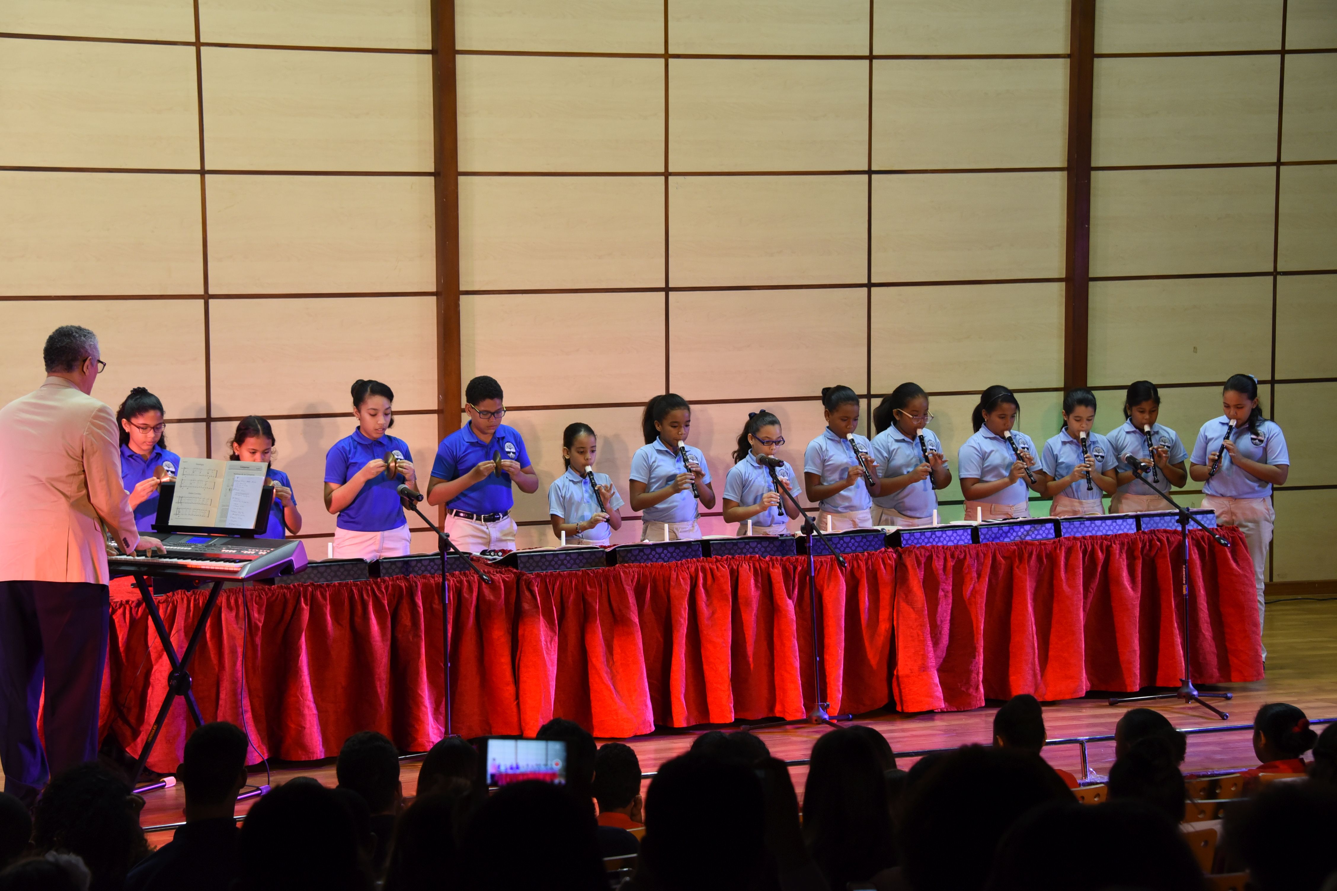 Mientras que, en la sección Elemental A, los muchachos de flauta presentaron” Concierto a Dos Flautas, “Campanas-Canzone y Branlee; en tanto que el grupo de Chimes ofreció “A Whole World”.