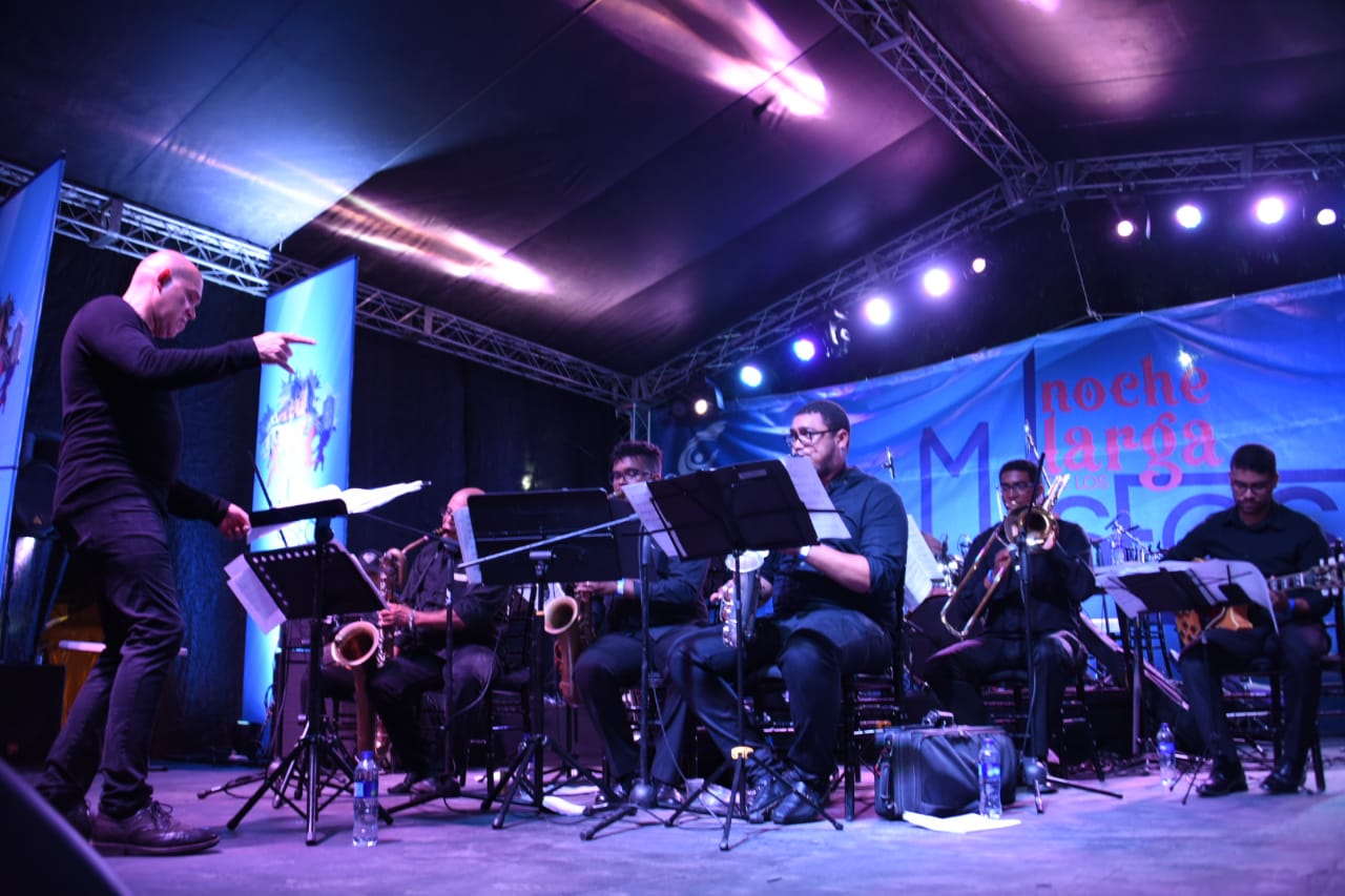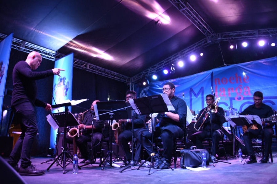Luego, la Pequeña Gran Banda, dirigida por el maestro Amaury Sánchez, se presentó en Plaza España, colmada de un entusiasta público, donde hizo gala del exquisito sonido en las ejecuciones de una selección piezas musicales del género del jazz clásico y latino